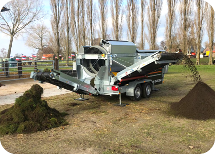 Met de opties als afstandsbediening, grof puinrek, transportband achter en uitneembare zeefmatten maken deze zeef tot een echte allrounder in de 3,5 ton klasse. Simpel, robuust en veelzijdig.